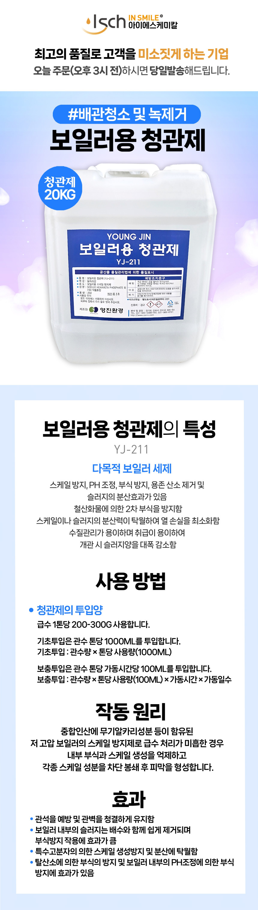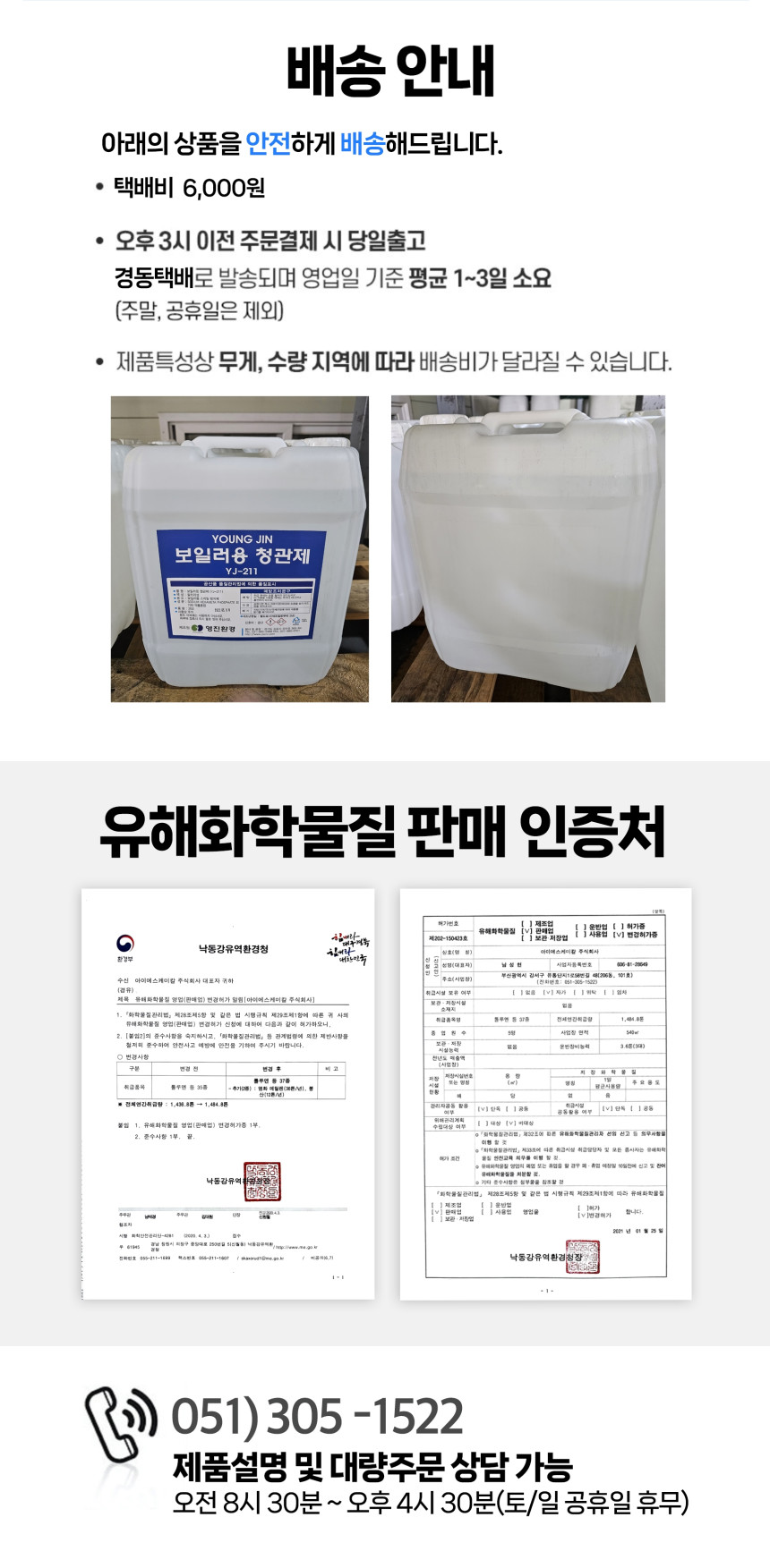 품목 및 제품명 영진 보일러 청관제 20KG YJ-211