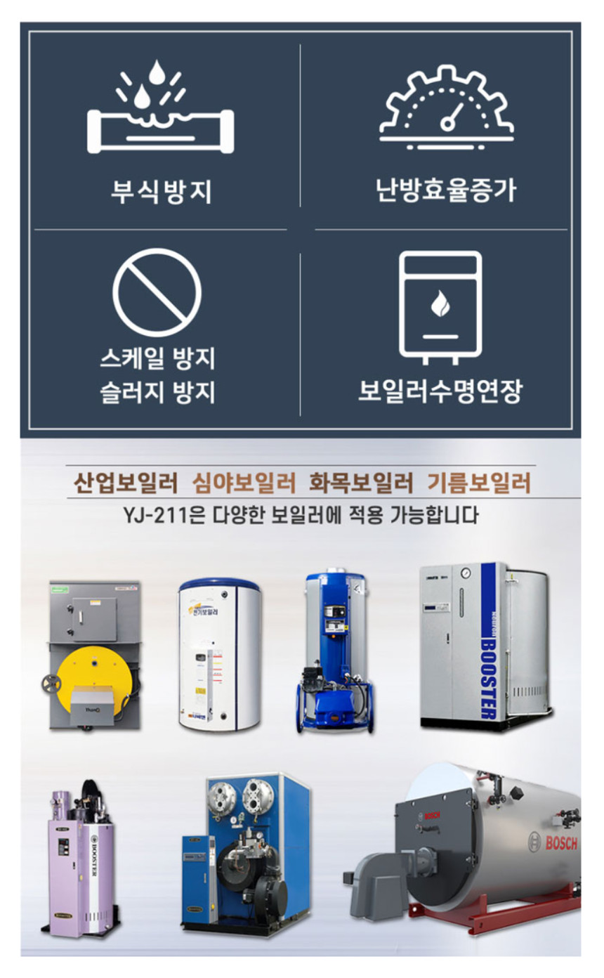 효과 · 효능 인산염에 의한 칼슘염 스케일의 방지 P - 알카리도에 의한 실리카 스케일의 방지 특수 고분자에 의한 스케일 생성방지 및 분산 탈산소에 의한 부식의 방지 보일러 내부의 PH 조정에 의한 부식 방지