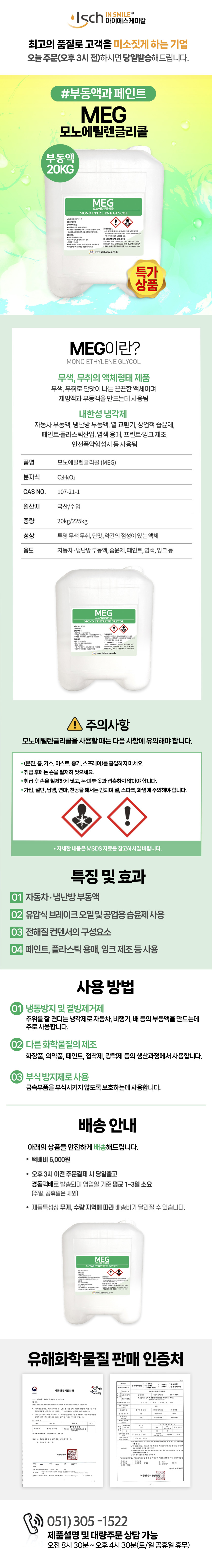 HOME > 화공약품 > 부동액 MEG, 99.9%, 20KG, 모노에틸렌글리콜, 기계동파 방지제